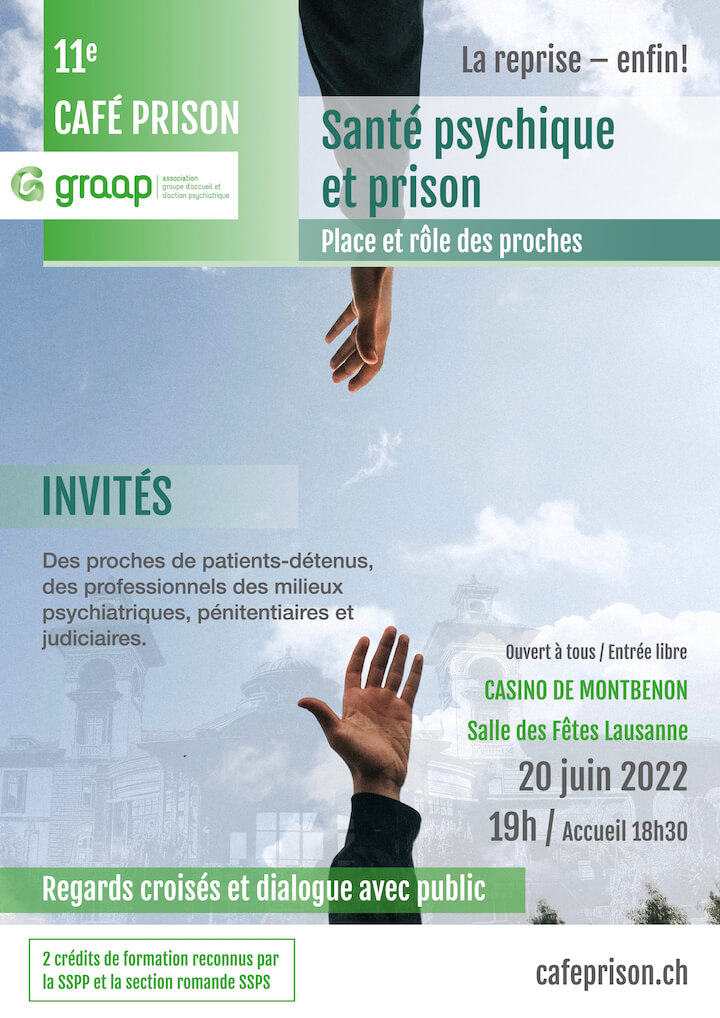 Le 11e Café Prison sur le thème « Santé psychique – place et rôle des proches » ouvre le débat sur des questions particulièrement sensibles comme l’importance du rôle de l’entourage dans le rétablissement et la réinsertion d’un patient psychique incarcéré. Sous la modération du journaliste, Laurent Bonnard, quatre proches feront part de leur parcours et trois intervenantes témoigneront de leurs expériences professionnelles.